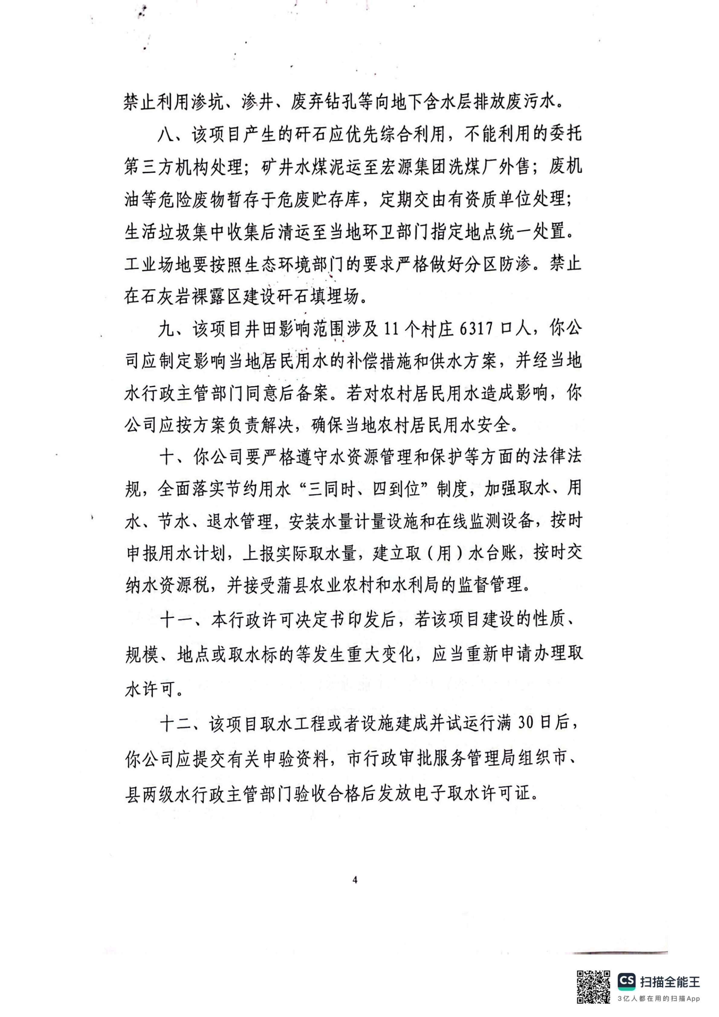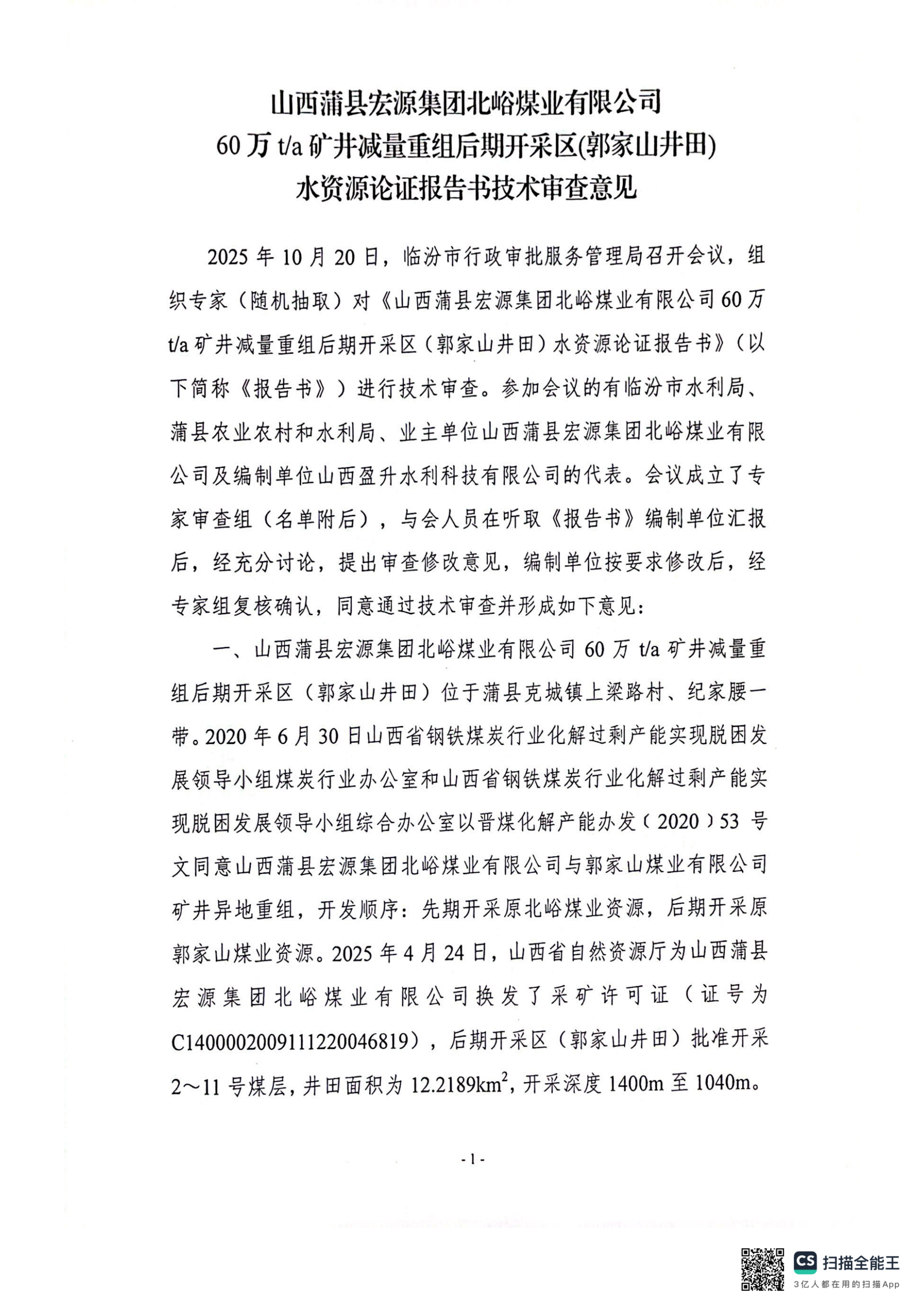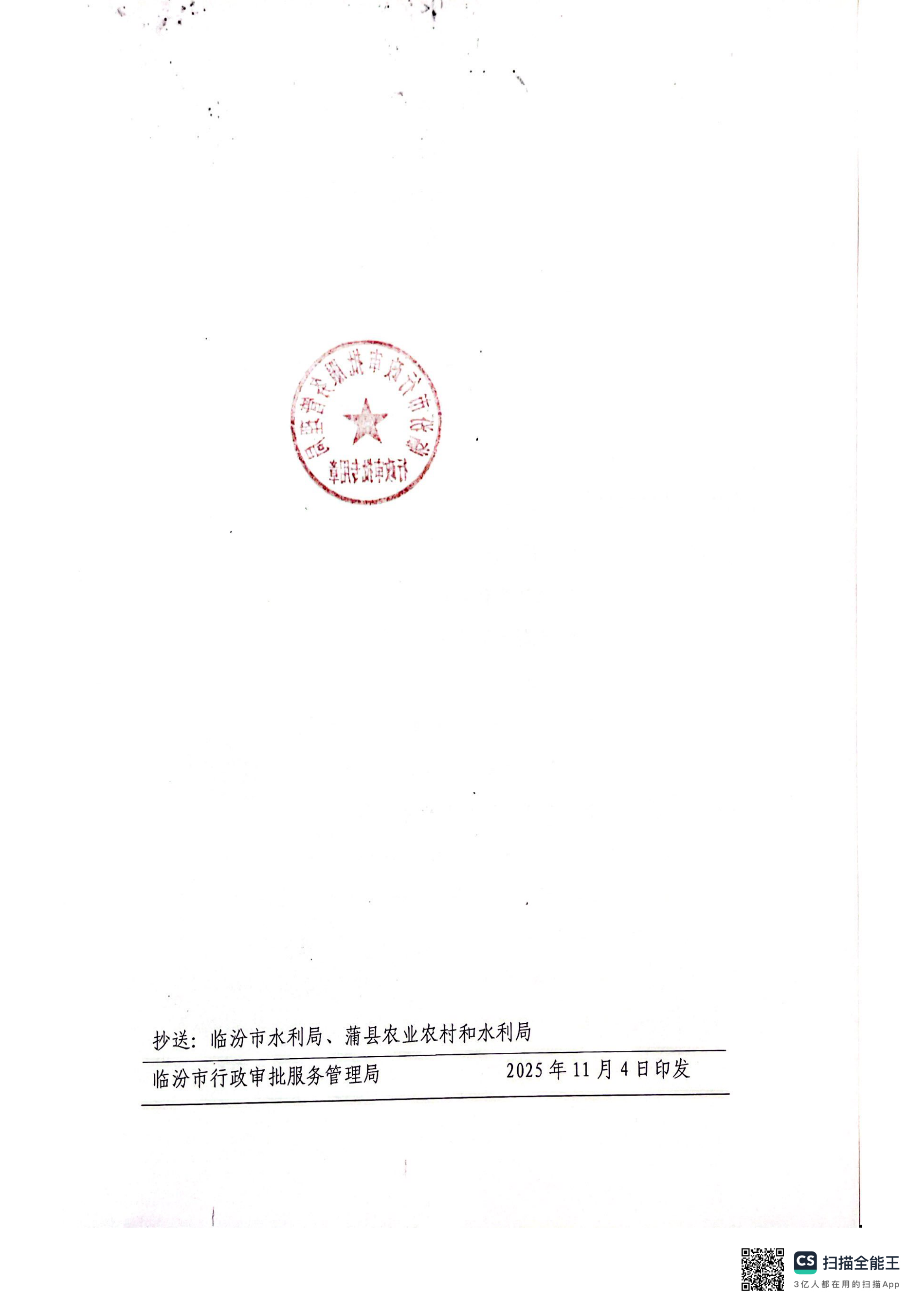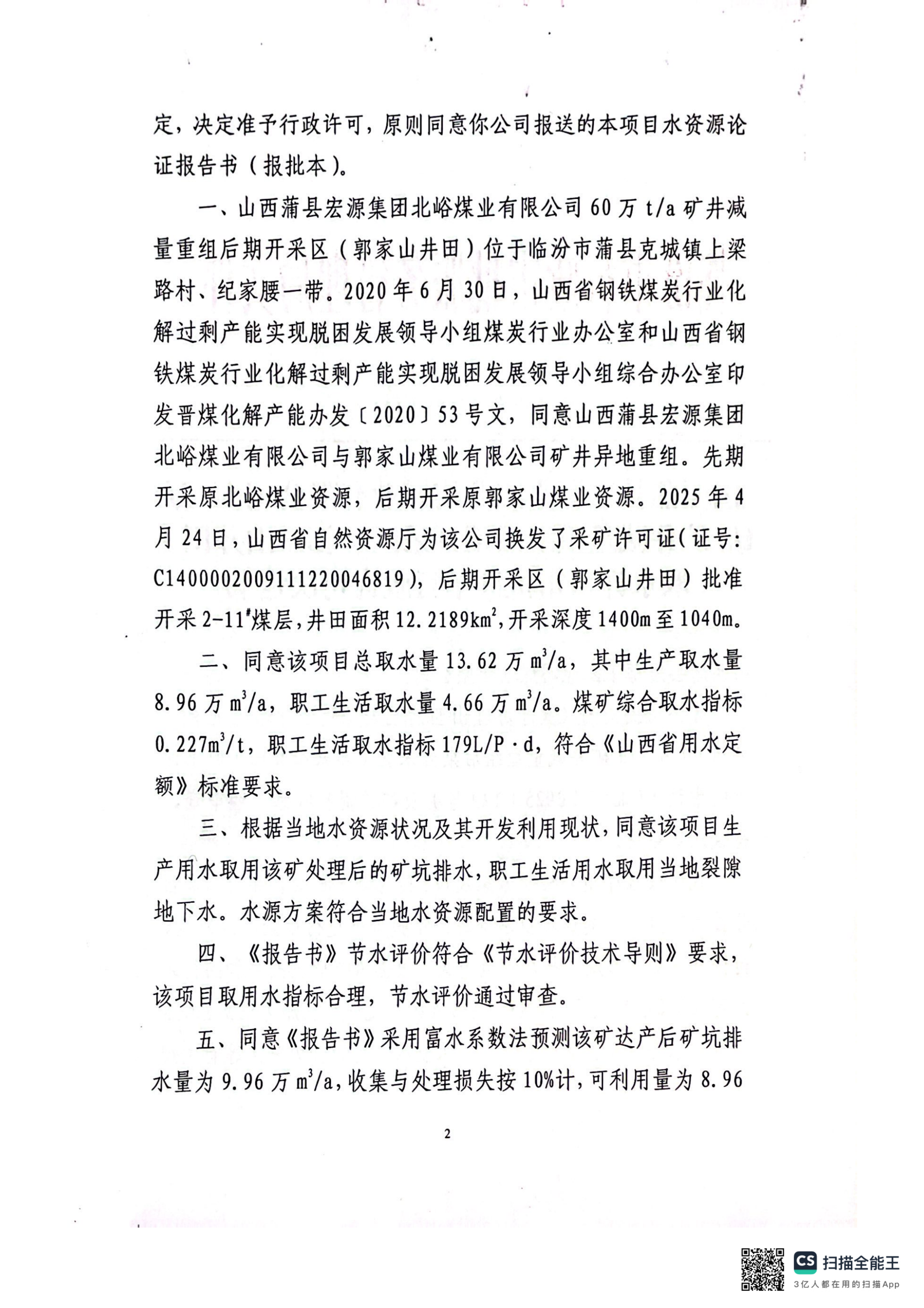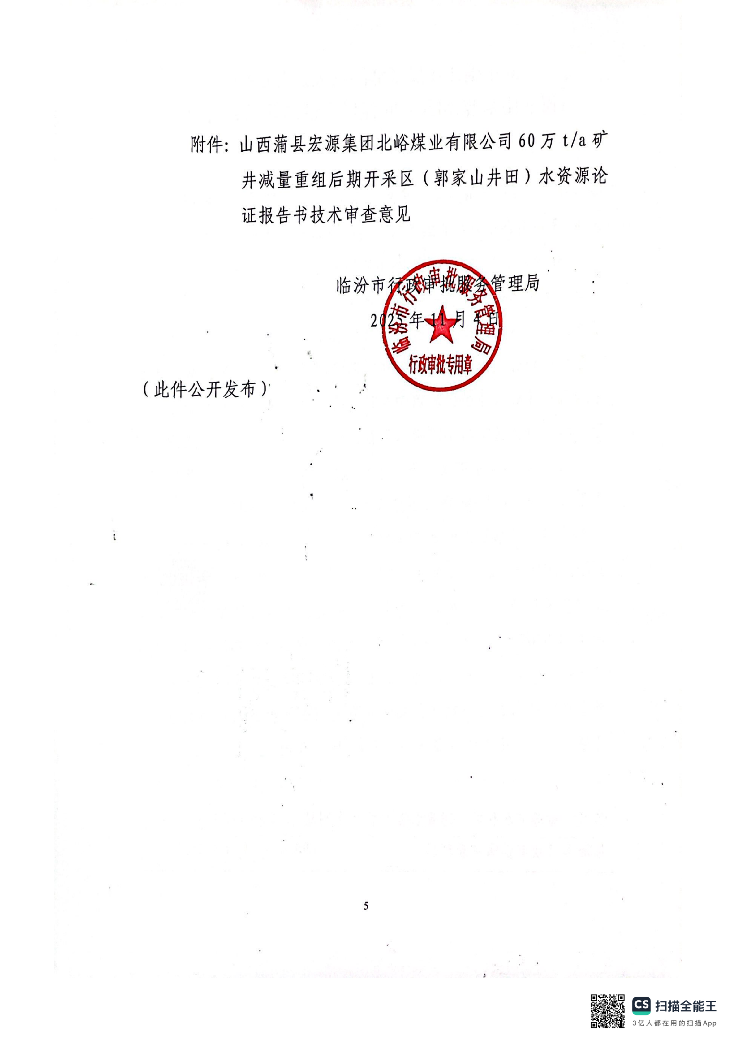 临汾市行政审批服务管理局关于山西蒲县宏源集团北峪煤业有限公司60万t/a矿井减量重组后期开采区(郭家山井田)取水许可审批准予行政许可决定书
