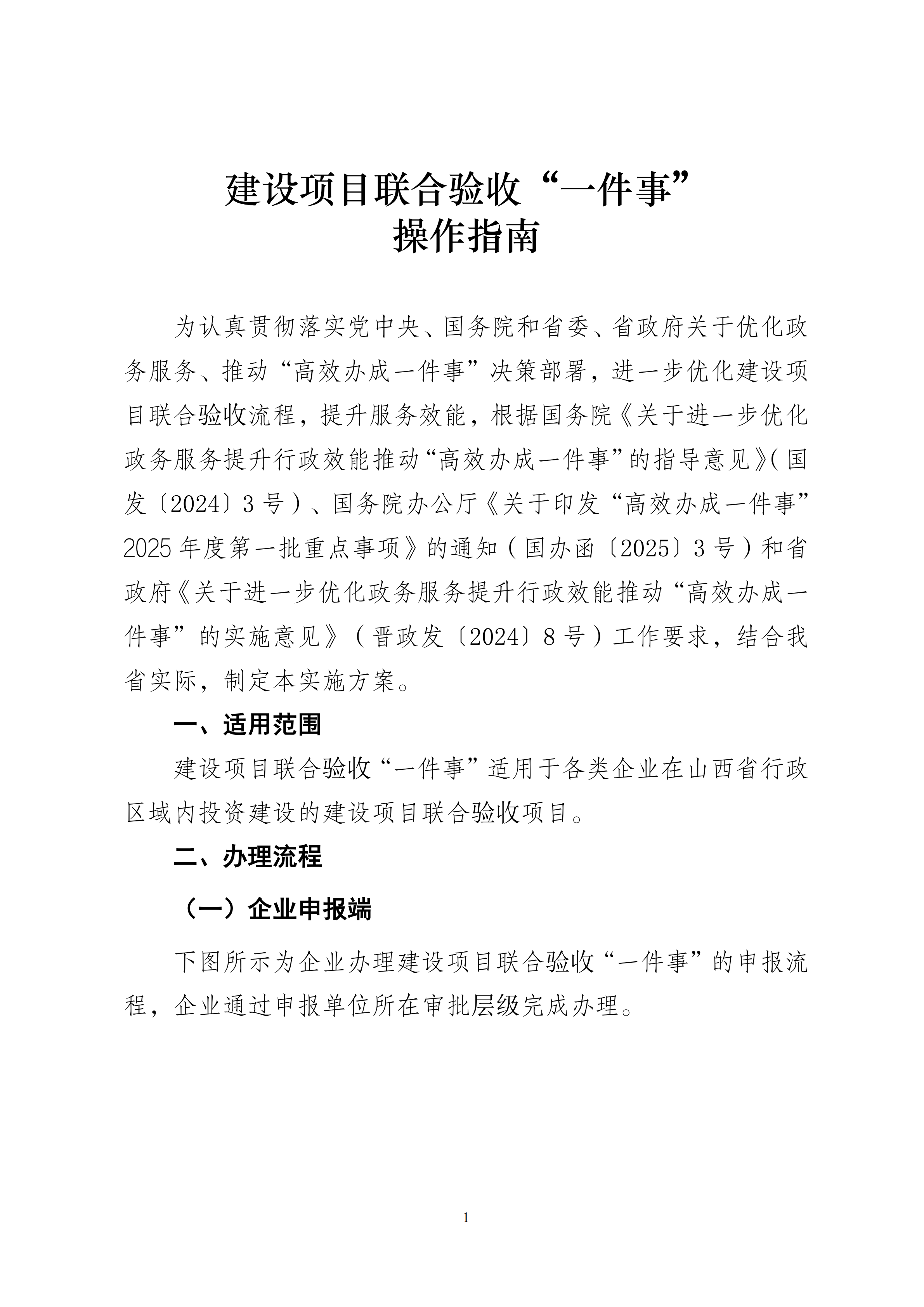 临汾市行政审批服务管理局关于建设项目联合验收“一件事”操作指南
